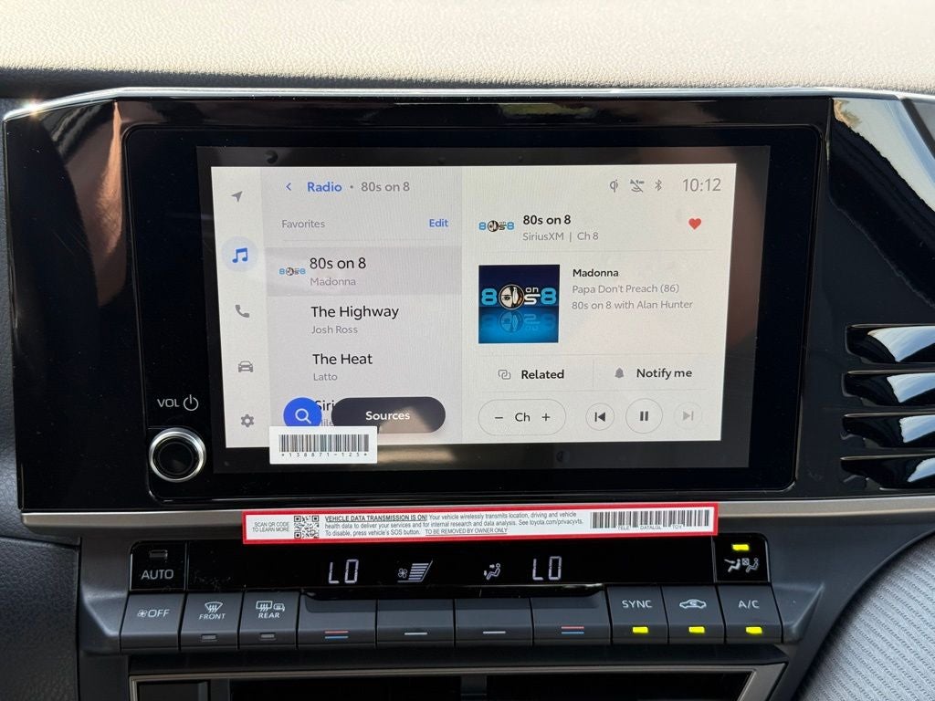 44. Use only if aware of circumstances surrounding vehicle it is legal safe to do so (e.g., do not remotely start a gas engine vehicle in an enclosed space or if vehicle is occupied by a child). Remote Connect services vary by vehicle and are subject to change at any time without notice. Services depend on 4G network availability, a cellular connection and GPS signal. Without any one or more of these things, operability may be limited or precluded. Further, if and when 4G network changes or is discontinued, or the underlying technology required to support service becomes obsolete, then the services will not work and will need to be discontinued. Digital Key also requires Bluetooth® connectivity. Not available on manual transmissions. Services require account registration through Toyota app and acceptance of Connected Services Terms of Use at toyota.com/content/dam/toyota/privacyvts/pdf/connected-services-terms-use.pdf and Master Data Consent. Data charges may apply. For Toyota’s Connected Services’ vehicle-generated data collection, use, sharing, and retention practices and agreements, see toyota.com/support/privacy-notice/. Trial period begins on original purchase or lease date of new vehicle. Paid subscription required after trial (if applicable). Terms of Use apply.