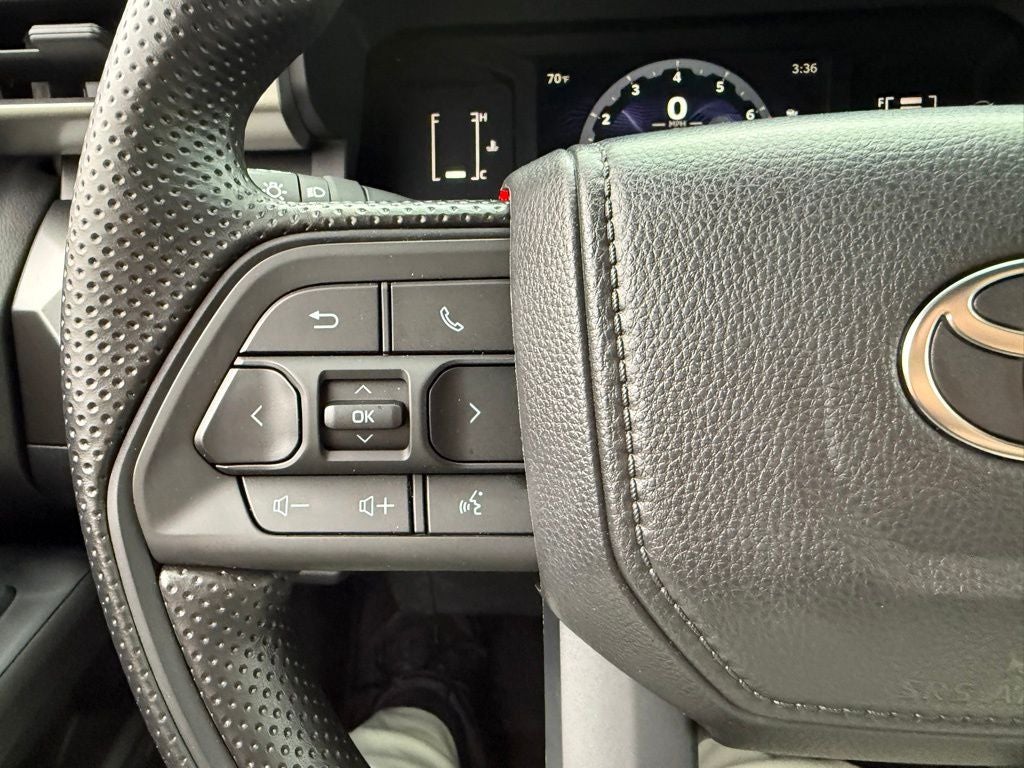• Polyurethane manual tilt/telescopic steering wheel with phone, audio, display/infotainment, and Driver Assist controls