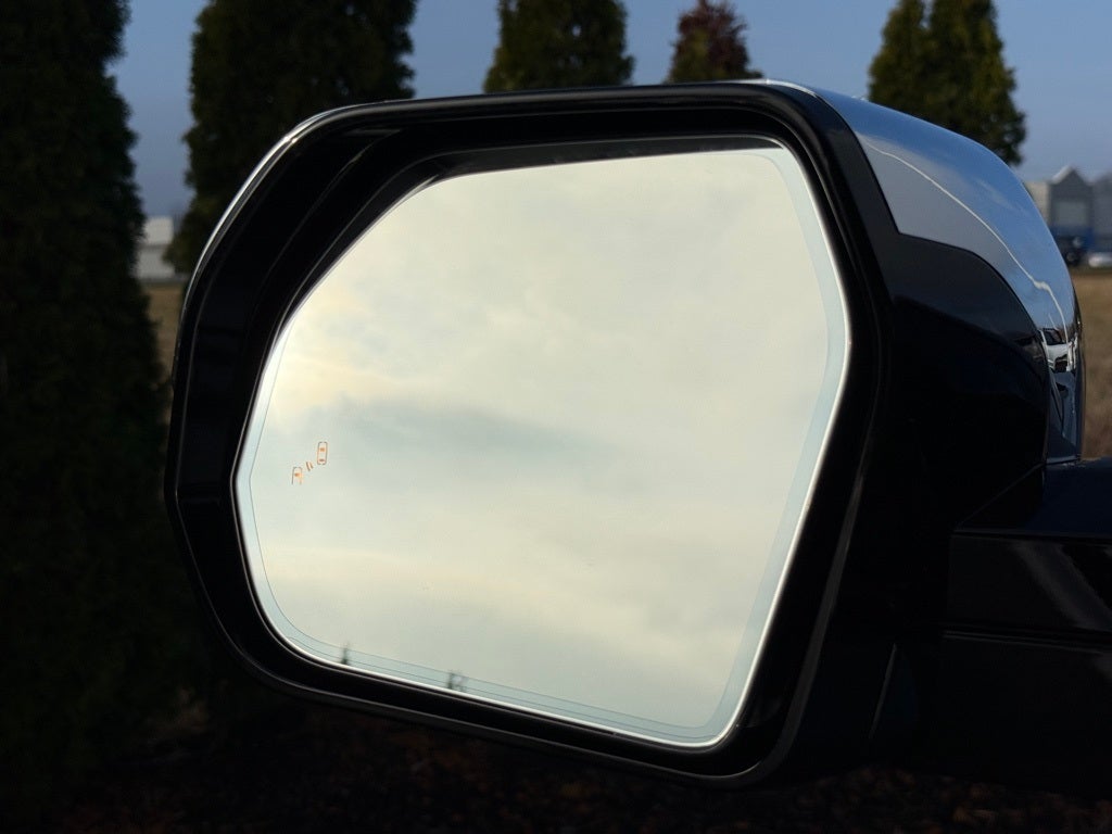 - Heated power outside mirrors with turn signal and blind spot warning indicators, 14 and power-folding and reverse tilt-down features; auto anti-glare driver's-side mirror only