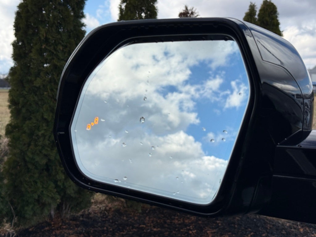 - Heated power outside mirrors with turn signal and blind spot warning indicators, 14 and power-folding and reverse tilt-down features; auto anti-glare driver's-side mirror only