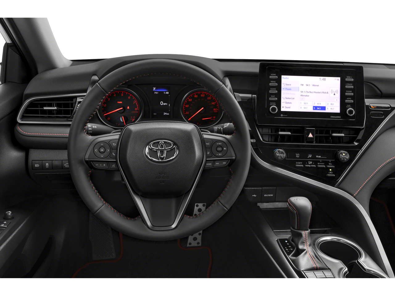 Black W/Silver Perf Cloth. 8-Speed Automatic FWD 2024 Toyota Camry TRD V6 TRD V6 Midnight Black Metallic 3.5L V6 DOHC 24V 22/31 City/Highway MPG